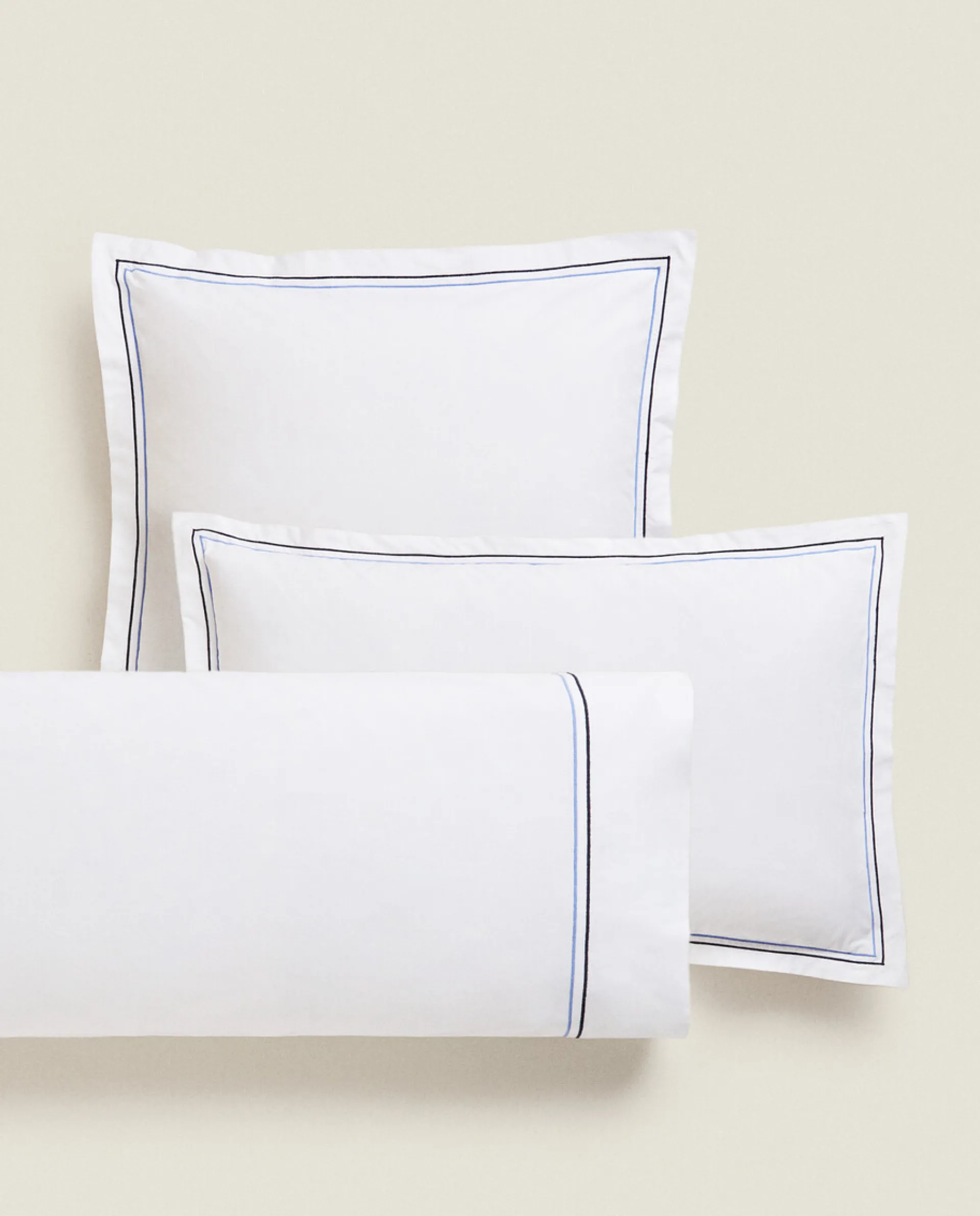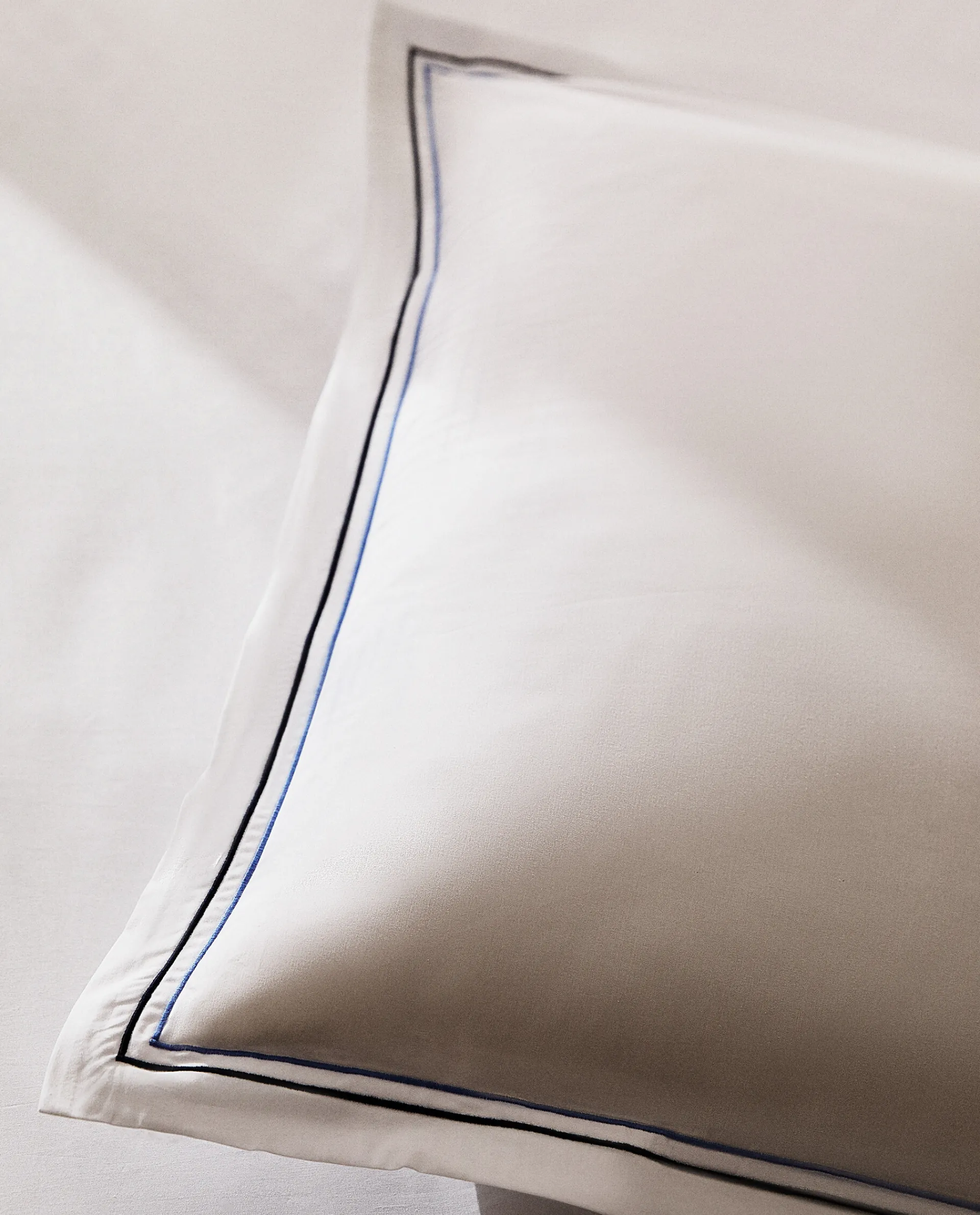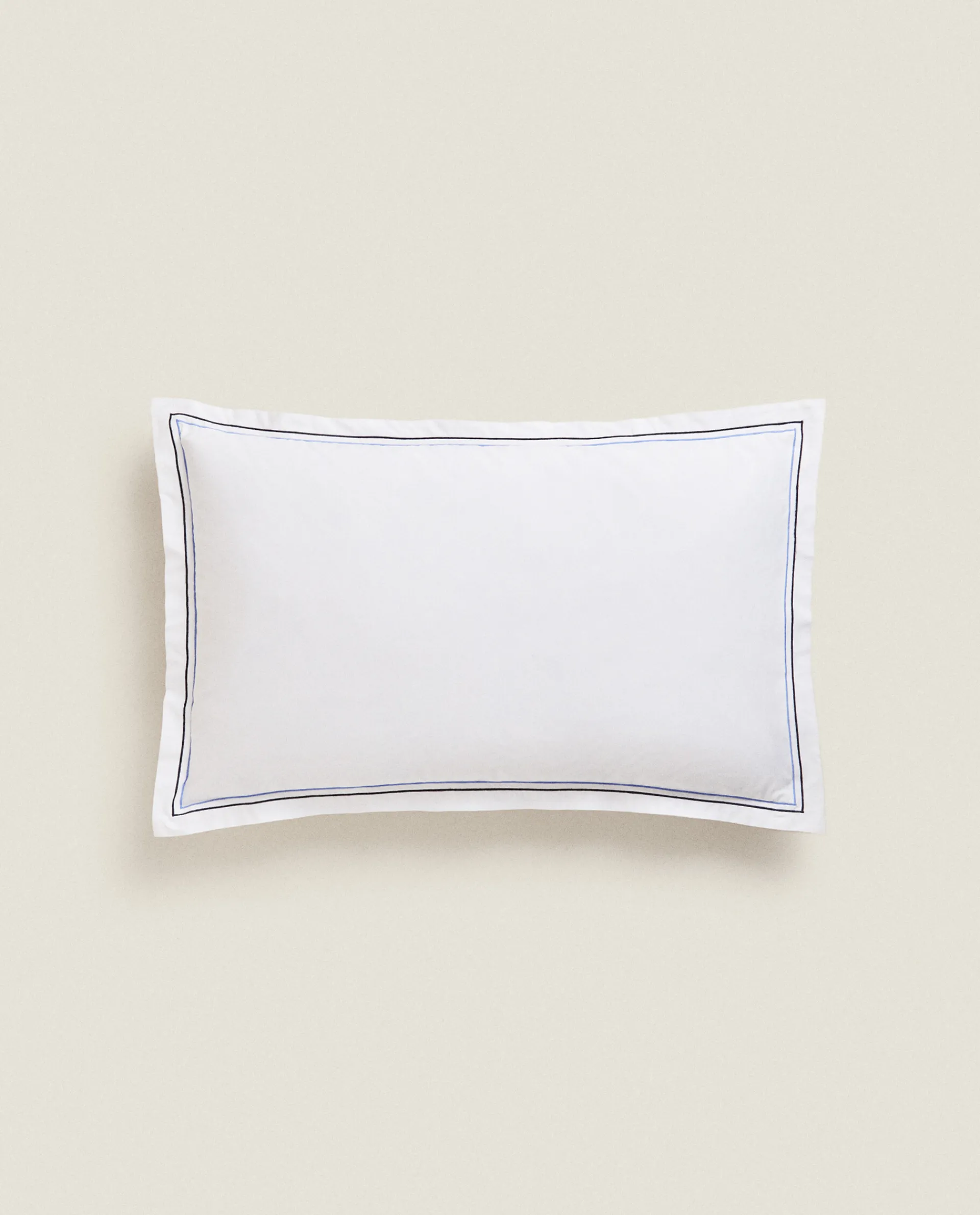 Pillowcases*ZARA Home Pillowcase With Two Embroidered Lines Blue