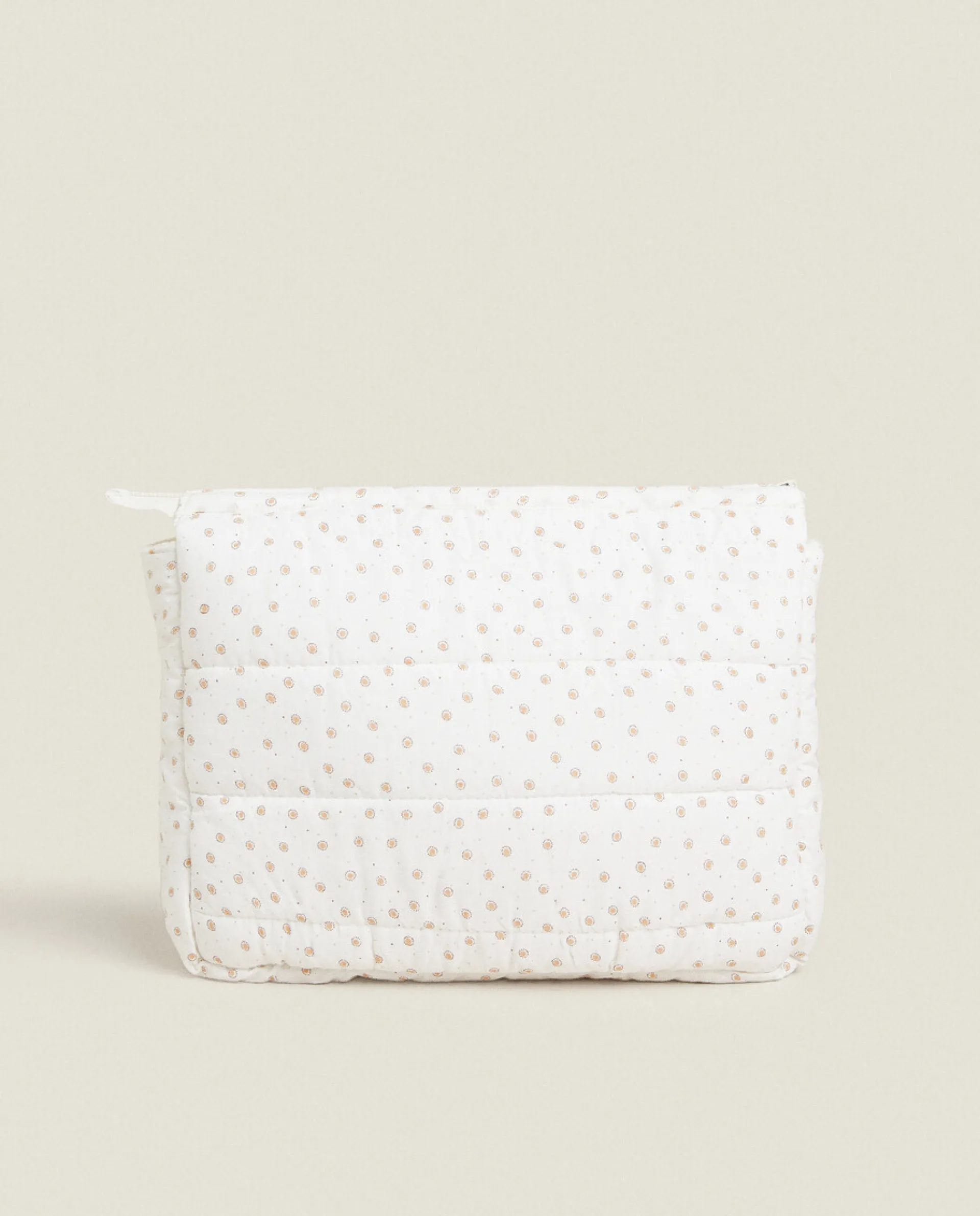 Toiletry Bag In Quilted Cotton With A Polka Dot Print And Zipper Fastening.